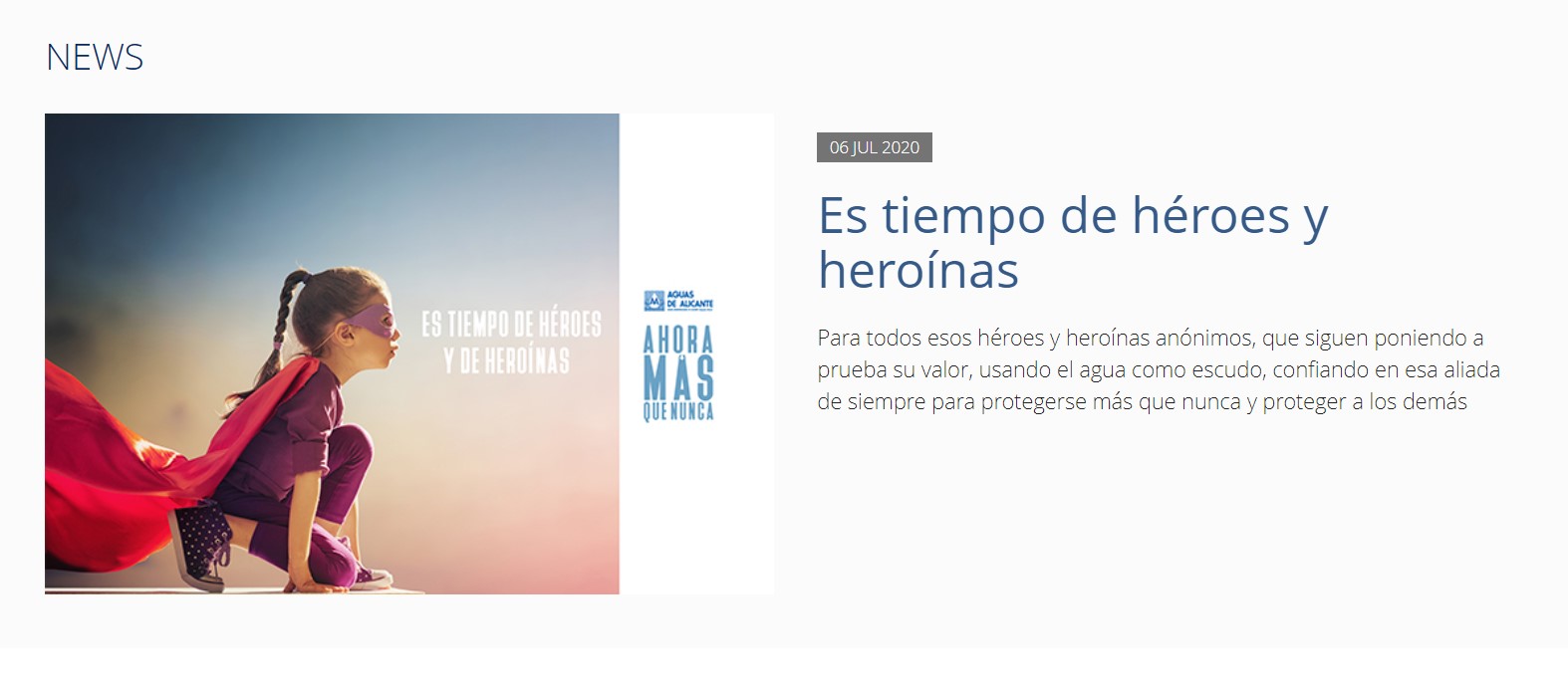 Aguas de Alicante is the public administrative institution for the management of the water in Alicante, Spain. I was in charge of its written communication in social media and website during the time I worked for the advertising agency Grupo Idex.